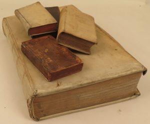 Joined, 4 smaller 17th-c. eds of works of Erasmus : De utraque verborum ac rerum copia. Amst., Janssonius, 1645, 12mo, vellum, 294 pp. - De conscribendis epistolis. Amst., Boom, 1670, 12mo, vellum, 470 pp. - Enchiridion. Cambridge, J. Hayes, 1685, 12mo, calf (loose, block broken), 400 pp. - Dialogus cui titulus Ciceronianus. Oxford, Lichfield, 1693, 12mo, leather (loose), 230-46 pp. Ref. Wing E-3198. S.w.a.f., not subject to return. (5 vol.)