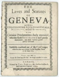 the French]. Rare English trsl. of a treatise on Church discipline in Calvinist Geneva. Title within border of type ornaments. Ref. ESTC R14357. Wing L-697 (A).