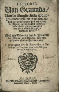 Historie van Granada/ van de borgherlijcke oorlogen/ ende andere/ die in het Granadijnsche Coninckrijcke geschiet sijn/ van de Mooren tegens de Christenen/ tot dat de Stadt ghewonnen wert van den Koninck Don Fernando de vijfde. Met een discours van...