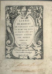 Libro de marchi de cavalli con li nomi de tutti li principi et privati sionori che hanno razza di cavalli.