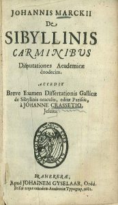 De Sibyllinis carminibus disputationes academicae duodecim. 1st ed. of a collection of 12 Franeker disputations under Marckius (1656-1731) mainly against the “Dissertation sur les oracles des Sibylles” (Paris 1678) of the Jesuit J. Crasset...