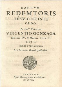 Equitum Redemtoris Iesu Christi ordo. A Ser(enissi)mo Principe Vincentio Gonzaga Mantuae IV. & Montis-Ferratii II. Duce M.D CVIII. institutus.