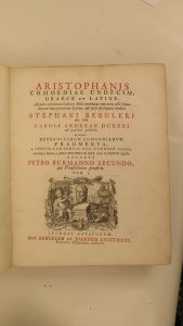 Comoediae undecim Graece et Latine (...) notis (...) Stephani Bergleri (...) Caroli Andreae Dukeri (...) [ed.] Petrus Burmannus Secundus. Important annotated ed. Engr. vignette on titles. Titles in red & black. Armorial bookpl. Mark Masterman...