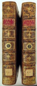 Edit. originale de la trad. par Hendrik Jansen de "Het groot schilderboek" (1707), important traité académique de dessin et de peinture (technique, composition, genres, couleurs...) et histoire de la peinture, par G. de Lairesse (Liège 1640-Amsterdam 1711), peintre, graveur et théoricien de l'art installé en Hollande. Ill. (complet) de 35 figures hors texte dont 4 dépl., gravées sous la direction de Robert Bénard. Provenance : famille princière belge.