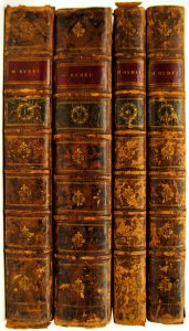 Rare complete set of a major biblical encyclopedia by the French Benedictine scholar Calmet (1672-1757), translated by M. Gargon (1661-1728) and supplemented by the Dutch scholars J. van Ostade (1677-1745) and A.H. Westerhovius (1677-1738). It covers all aspects of biblical history, geography and culture, including Jewish antiquities. On pp. 1-92 (vol. I) a “Gewyde boekzaal” (= extensive Bible bibliography). Engr. ills : frontisp. by Ph. de Gunst, 2 title vign., 2 cartouches, 6 headpieces and more than 160 engr. maps, plans, views and plates (some folding) by A. de Putter, F. van Bleyswyk, Ph. de Gunst etc. Titles in red and black. Printed in 2 cols.