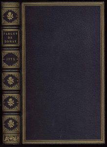 "L'un des plus agréables livres du XVIIIe s. (...) le chef-d'oeuvre de Marillier, sous le rapport de la finesse de l'exécution et de l'esprit qui règne dans tous les jolis sujets qui l'ornent" (Cohen). Ex. sur hollande avec le t. I en premier tirage (rangée d'entrelacs p. iii), sans le carton de la p. 162 et la p. xxii paginée xii. En grande partie en premier tirage (5 ill. étaient déjà parues dans l'édition de 1772), l'illustr. comporte 2 frontisp. gravés par de Ghendt, une vignette de titre au portrait de La Fontaine, une figure gravée par Delaunay (répétée dans la 2e partie comme il se doit), 99 bandeaux et 99 culs-de-lampe, gravés par Arrivet, Baquoy, Duflos, Lebeau, Lingée, de Longueil, Née, Ponce, etc. Bel ex. avec les gravures en très beau tirage. Ex-libris monogrammé JH sur cuir vert.