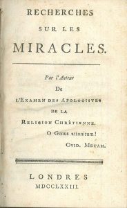 Recherches sur les miracles. Par l'auteur de l'Examen des apologistes de la religion chrétienne.