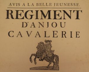 2 affiches appelant "la belle jeunesse" à s'enrôler dans les régiments de cavalerie d'Anjou et de Saluces. "Les jeunes gens de famille seront distingués" et "ceux qui procureront de beaux hommes & connus, seront bien récompensés".