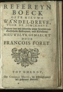 Refereyn boeck ofte nieuwe wandel-dreve, voor de jonckheyt. Beplant met vele diversche jonge spruyten van geestelycke refereynen/ ende lidekens.