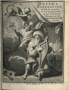 Dutch version of all Psalms by F. Halma (1653-1722), with new melodies by J. Riehman. Printed music throughout. With engr. front. and vignettes on titles.