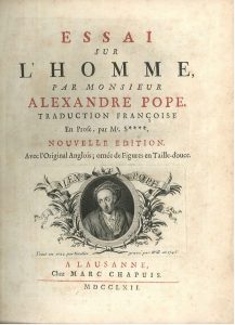 Essai sur l’homme. Traduction françoise en prose, par Mr. [Étienne de] S[ilhouette]. Nouvelle édition. Avec l’original anglois; ornée de figures en taille-douce.