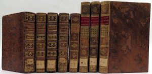 Joint : Bourgoing, Jean-François de - Tableau de l'Espagne moderne. 3e édit. Paris, Levrault fr., 1803, 3 vol., in-8, basane racinée de l'époque, dos lisses ornés dorés (frottés, étiq. de papier en queue), tr. jaspées. - Vertot, René Aubert de - Révolutions de Portugal. Nouvelle édit. Paris, Libraires associés, 1786, in-12, basane mouchetée de l'époque (coupes frottées avec petits manques), dos lisse orné doré (étiq. de papier en queue), tr. jaspées. (8 vol., provenance : famille princière belge)