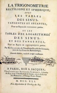 La trigonometrie rectiligne et spherique; avec les tables des sinus, tangentes et secantes (...) et les tables des logarithmes, des sinus, et des tangentes (...). Nouvelle edition, revuë & corrigée exactement.