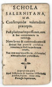 Schola Salernitana, id est, Conservandae valetudinis praecepta (...) Una cum annexis ad finem observationibus quibusdam probatissimis.