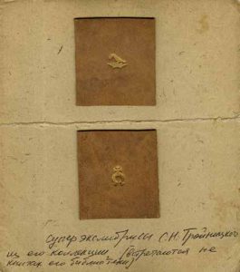 Тройницкий Сергей Николаевич (1882-1948 ?) - Один из основателей журнала « Старые годы », искусствовед и геральдист, в 1918-1927 гг. Директор Эрмитажа. Два супер экслибриса (кожа и позолота). Troynitzky Sergey Nikolaevitch (1882-1948) - Directeur du musée de l’Ermitage à Saint-Pétersbourg entre 1918 et 1927, un des fondateurs de la revue «Les anciennes années», historien d’art et héraldiste. [Collection de V. Khydoley]