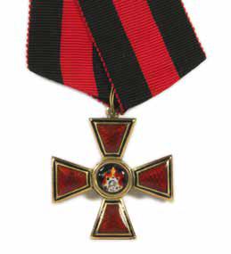 Insigne De L’ordre De Saint Vladimir Civil, En or et émail, présenté avec un ruban. Traces de deux lettres sous l’émail ; modèle dit en russe «soufflé». Haut.: 3,8 cm - Poids brut : 7,5 cm. (Chocs)