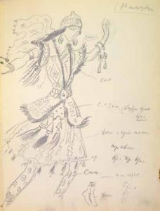 Dobujinsky Mstislav (1875-1957) Cahier personnel avec ses dessins, daté 1957 - l’année de la mort de Dobujinsky Mstislav. Cahier in-4, reliure en cartonnage. Il contient : - 1ère partie titrée par Dobujinsky «Les dessins de mes costumes des