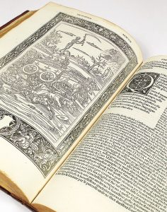 Élégante édition, imprimée avec soin au format in-folio et ornée de 6 bois à pleine page.