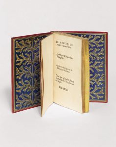 formé de palmettes et rosaces dorées entourées de filets à froid sur les plats, doublures de maroquin bleu
