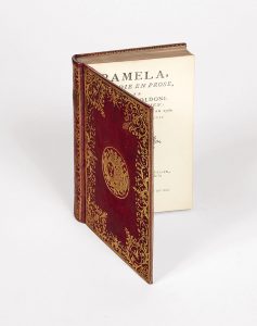 GOLDONI, Carlo. Pamela, comédie en prose : représentée à Mantoue en 1750. Traduite en françois par D.B.D.V. [de Bonnel du Valguier]. Paris, Antoine-Urbain Coutelier, 1759. In-8, maroquin rouge, dos lisse orné, pièce de titre de maroquin olive,...