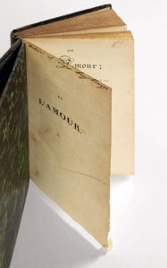 Il s'agit, par ailleurs, du seul exemplaire connu de De l'amour enrichi d'un envoi autographe de l'auteur.