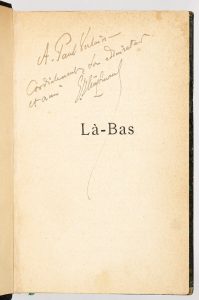 HUYSMANS, Joris-Karl. Là-bas. Paris, Tresse & Stock, 1891. In-12 de (2) ff., 441 pp., (1) f. : demi-chagrin vert, dos à nerfs orné de fleurons, tranches jaspées (reliure de l'époque). Édition originale. L'autre grand roman de Huysmans avec À...