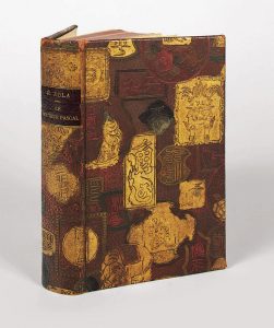 ZOLA, Émile. Le Docteur Pascal. Paris, Bibliothèque Charpentier, 1893. In-12 de (2) ff., 1 arbre généalogique des Rougon-Macquart replié hors texte, 390 pp., (1) f. de prospectus : cartonnage japonisant à la Bradel, pièce de titre de maroquin...