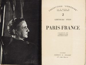 STEIN, Gertrude. Paris France. Traduit de l'américain par madame d'Aiguy. Alger, Éditions E. Charlot, 1941. In-12 : broché, sous chemise-étui. Édition originale de la traduction française. Elle est illustrée en frontispice d'un portrait...