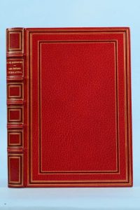 Édition illustrée de 66 eaux-fortes, dont 15 hors texte, dessinées et gravées par Auguste Brouet. # Un des 160 exemplaires sur hollande van Gelder Zonen. # Bel exemplaire en maroquin rouge de Paul Gruel. # Étui discrètement renforcé.