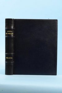 NERCIAT (André-Robert Andréa de). Félicia ou Mes Fredaines. Paris, Le Vasseur et Cie, 1933. In-8, maroquin noir janséniste, tête dorée, cadre intérieur orné d'une guirlande dorée, couverture et dos (M. Forbin).