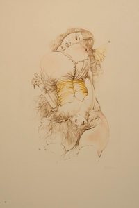 Gravure tirée sur Arches, gravée par Cécile Deux et signée au recto par Hans Bellmer. #