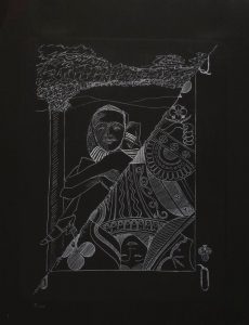 Gravure tirée sur papier noir. Tirée à 100 exemplaires et monogrammée au recto par Man Ray.