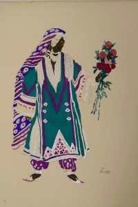 Portefeuille contenant 21 planches dont 16 coloriées à la main, représentant de somptueux costumes des ballets russes que Léon Bakst réalisa entre 1909 et 1921.