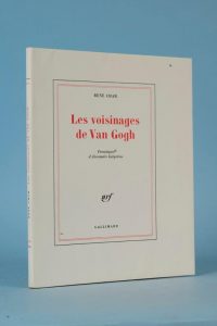 Les Voisinages de Van Gogh. Paris, Gallimard, 1985. In-4, broché. Édition originale. Un des 155 premiers exemplaires numérotés sur Aquarelle Arches satiné, comportant en frontispice une gouache reproduite par Daniel Jacomet et signée par Alexandre Gaspérine. Bel exemplaire. # Poèmes de René Char. Paris, Marie-Claude Billet, 1987. Grand in-4, en feuilles, chemise titrée et étui de l'édition. Édition reproduisant le texte calligraphié de René Char enluminé de compositions en couleurs également reproduites par Alexandre Gaspérine.