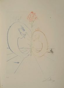Édition illustrée de 7 bois gravés, d'un collage mis en couleurs, et d'un cuivre en couleurs gravé au diamant par Salvador Dalí. # Tirage à 475 exemplaires, celui-ci un des 190 sur vélin d'Arches, signé à la justification par l'artiste. # Exemplaire comportant les bois, tous signés par Salvador Dali ainsi qu'une gravure sur cuivre également signée par l'artiste. # Dos légèrement passé.