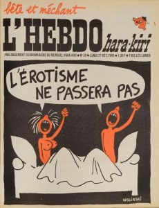 Collection complète des 94 numéros de Hara-Kiri-Hebdo (puis L'Hebdo Hara-Kiri), et des 6 premiers numéros de Charlie Hebdo. Elle contient d'innombrables dessins satyriques de Reiser, Cabu, Wolinski, etc. # Hara-Kiri-Hebdo fut créé en complément du mensuel Hara-Kiri pour pouvoir réagir plus rapidement à l'actualité. Il paru pour la première fois sous ce titre en 1969, puis sera rebaptisé L'Hebdo Hara-Kiri pour finalement devenir Charlie Hebdo en 1970, après la censure exercée à l'encontre du numéro publié lors du décès du Général de Gaulle.