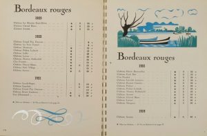 Liste des grands vins 1933. Illustrations de Jean Hugo. [3 exemplaires]. – 1934. Bois en couleurs d'Alfred Latour. – 1950. Sous le signe du soleil levant. Illustrations de R. Harada. – 1954. Sous le signe de quelques jolies filles des provinces de France. Aquarelles de Kees van Dongen. – 1955. Sous le signe des "Still life". Peintures d'André Marchand. – 1957. Sous le signe d'une petite fille. Aquarelles de Constantin Terechkovitch. – 1958. Sous le signe du soleil. Peintures de Roger Limouse. – 1959. Sous le signe du Mexique. Peintures de Christian Caillard. – 1967. Peintures de Maurice Louis Savin. – 1970. Peintures de Maurice Ghiglion-Green. – 1971. Des alpilles à la mer. Peintures de Maurice-Émile Sarthou. #