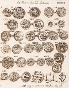 BEREZINE (Ilya Nicolaevitch). Catalogue des monnaies et des médailles du cabinet numismatique de l'Université de Casan. Casan, Imprimerie de l'Université 1855. in-4 demi-basane vii-(19)-52-(lxxxvi) 20-71 p. avec 17 planches hors texte. -...
