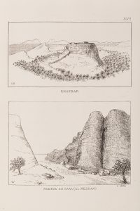 20 de cartes à dessins et planche d'estampage repliées. Notices et Extrait des Manuscrits de la bibliothèque nationale tome XXIX, br. couverture d'apprêt. - Charles Doughty offrit à l'Académie des Inscriptions les carnets et estampages qu'il avait rapportés de ses voyages en Arabie du Nord des années 1876-77. .; Renan et les épigraphistes J. Derenbourg, de Vogüe, P. Berger, J. Halévy et Clermont-Ganneau traduisirent les 27 textes nabatéens relevés à Médain-Saleh. Ces inscriptions en langue araméenne offrent la particularité que les noms propres sont presque tous arabes, ce qui fixe l'origine de ces nabatéens. L'ouvrage comporte une introduction par E. Renan, une note en anglais de 28 pp. par charles Doughty et une transcription et traduction des inscriptions.