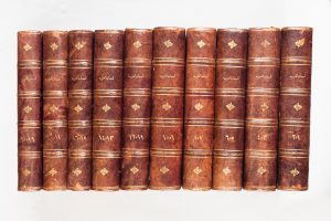 LE LISAN AL-ARAB DANS L'ÉDITION ORIGINALE DE FARIS AL-CHIDIAQ - IBN MANDHUR (Muhammad b. Mukarram al-Ifriqi al-Misri). Lisan al-Arab. Le Caire, Bûlaq 1300-1308 (1882-1889) 20 tomes en 10 vol. in-4 demi-basane noire à coins, dos à nerfs, orné;...