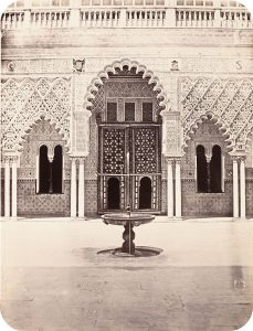 Photographe non identifié - Séville, c. 1860. - Alcazar, cour des Demoiselles. - Épreuve sur papier albuminé contrecollée sur carton. Légende à l'encre sur le montage. - 27 x 20,6 cm