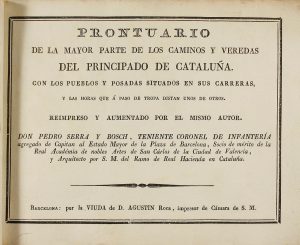 1814. (ITINERARIOS-CATALUNYA). SERRA Y BOSCH, PEDRO: PRONTUARIO DE LA MAYOR PARTE DE LOS CAMINOS Y VEREDAS DEL PRINCIPADO DE CATALUÑA. Con los pueblos y posadas situados en sus carreras, y las horas que a paso de tropa distan unos de otros....