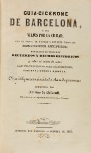 1847. BOFARULL, ANTONIO DE: GUIA-CICERONE DE BARCELONA O SEA VIAJES POR LA CIUDAD... Barcelona: Imp. del Fomento, 1847. 8º. Mapa plegado. Enc. en media piel.