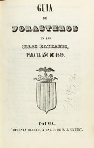 1849. (GUIA-BALEARES-MADRID). GUIA DE FORASTEROS en las Islas Baleares, para el año 1849. Palma. Imprenta Balear, a cargo de P.J. Umbert. 1849. 8º. 128 p. Enc. en plena piel gofrada.