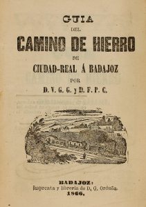 1866. (GUIA). GUIA DEL CAMINO DE HIERRO DE CIUDAD-REAL A BADAJOZ. Badajoz: Imp. y librería de D. G. Orduña, 1866.