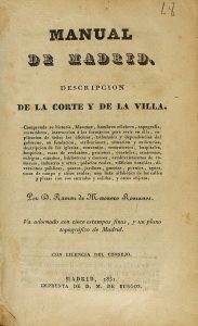 1831. (GUIA). MANUAL DE MADRID descripcion de la corte y de la villa. Madrid: Imp. de D. M de Burgos, 1831. 8º menor. 368 p. 2 planos plegados, uno de la villa y el otro corresponde al Teatro de la Plaza de Oriente. Láminas. Enc. en plena piel....