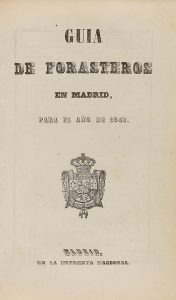 1848. GUIA DE FORASTEROS EN MADRID. [Más:] ESTADO MILITAR DE EUROPA E INDIAS AÑO 1848. Madrid: Imp. Nacional, 1847. 8º. 422 p.; II: 230 p. Enc. piel editorial trabajada.