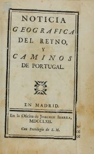 1762. (VIAJES-ITINERARIOS-POSTAS). NOTICIA GEOGRAFICA DEL REYNO Y CAMINOS DE PORTUGAL. En Madrid: en la Oficina de Joachin Ibarra, 1762. 8º menor. 226 p. Texto fileteado. Enc. en media piel.