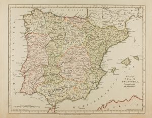 1794. MAP OF SPAIN & PORTUGAL. London: Published R. Wilkinson, 1794. 25 x 31,5 cm. Grabado coloreado.