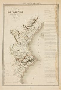 1834. (VALENCIA) DUFOUR: REYNO DE VALENCIA CON LAS NUEVAS DIVISIONES. Paris: 1834. Grabado al cobre coloreado, montado en cartoné. 83 x 57 cm.; 94 x 66 cm. papel.